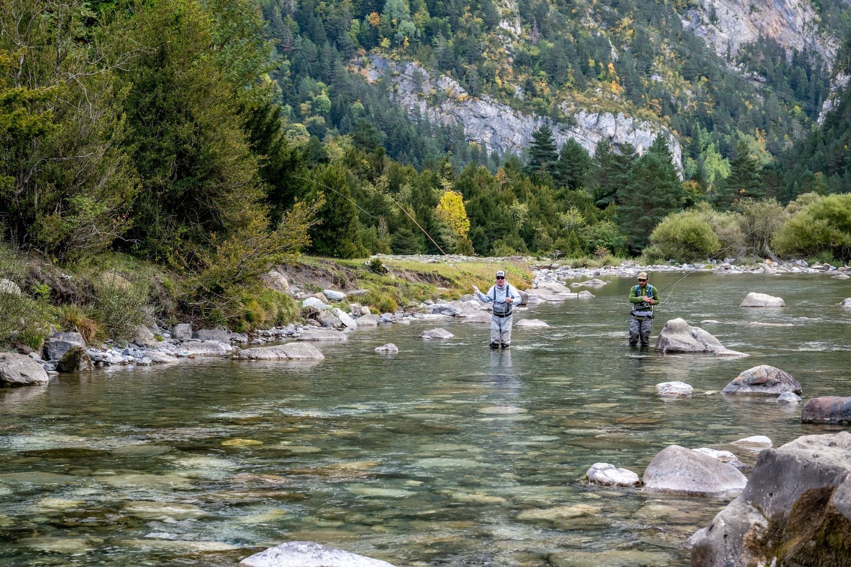 A little-known destination for most traveling anglers, the Spanish Pyrenees offers one of the most attractive and unique fishing experiences in the world. The European nation offers remote fishing for wild trout, an appealing climate, consistent dry fly action, an exotic culture, delicious food, and some of the most stunning landscapes found anywhere in the world. Ernest Hemingway visited (and fished) Spain in the 1920s and found himself fascinated by the rivers, mountains, and the warmth of the local people. One hundred years later – in the remote mountains and isolated fisheries of the Pyrenees – little has changed. The Spanish Pyrenees are the largest mountain range in southern Europe, offering several different options for fly fishing. High mountain lakes with spectacular views, hidden aqua-blue gorges teeming with indigenous Mediterranean zebra trout and brown trout, and stunning mid-size mountain streams are accessed and fished with this unique program.